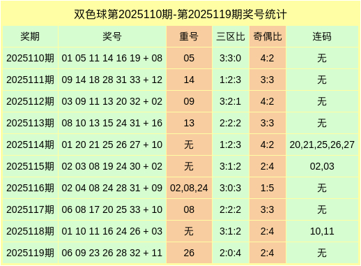 红球三区比为2:0:4,大小比为4:2,奇偶比为2:4,连码未开出,叠加号码出现1枚26。